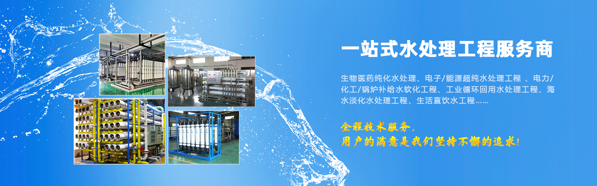 公司主要產品有:純水設備,純水處理設備,超純水設備,純化水設備,反滲透水處理設備,軟水處理設備,加藥裝置及開水機,直飲水設備,在生活污水處理,中水回用等領域也有豐富的工程業績成果。